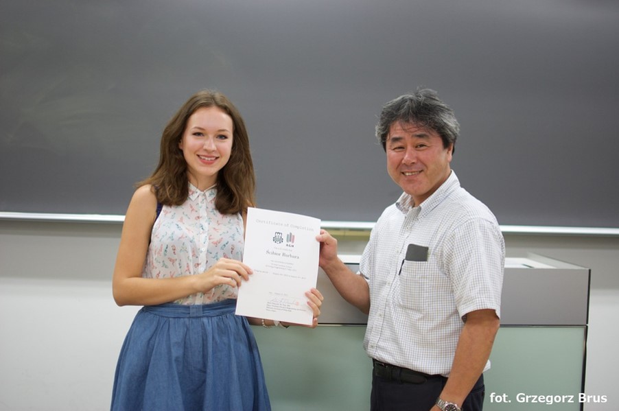 The following point of celebrations’ program was the presentation of diplomas to graduates who completed the joint second-cycle (Master) Degree Programme of the Energy and Environmental Engineering (3E) by the President of SIT, Dr Jun Yamada and Prof. Akito Takasaki, the course coordinator from the Japanese side, and the Dean of the Faculty of Energy and Fuels Prof. Monika Motak and Prof. Janusz Szmyd from the Polish side. Graduation diplomas were awarded to Gregory Bond III, Eryk Jasak, Mateusz Mańka, Bartłomiej Sarwa, and Paweł Sochański